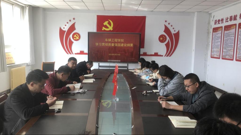 3月14日下午,按照学校关于认真学习贯彻《质量强国建设纲要》工作部署,结合“三抓三促”行动,车辆工程学院召开专题会议,院长王会平领学《质量强国建设纲要》,全体教职工参加。