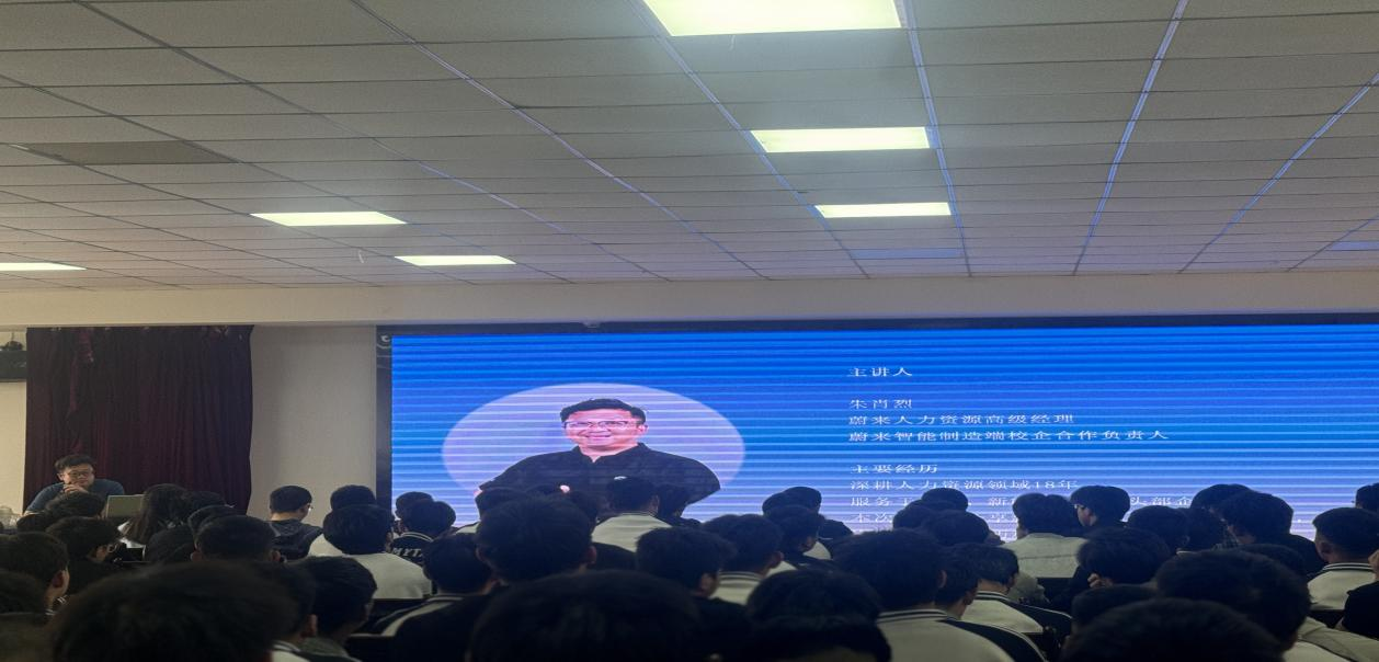 讲座中,朱肖烈先生围绕新能源汽车行业的现状、发展历程、未来趋势及汽车品牌发展阶段等核心议题,进行了全面深入的剖析。他结合行业数据和个人见解,让师生们看到了新能源汽车行业的广阔前景,理解了蔚来作为行业领军者的创新精神和实践探索。