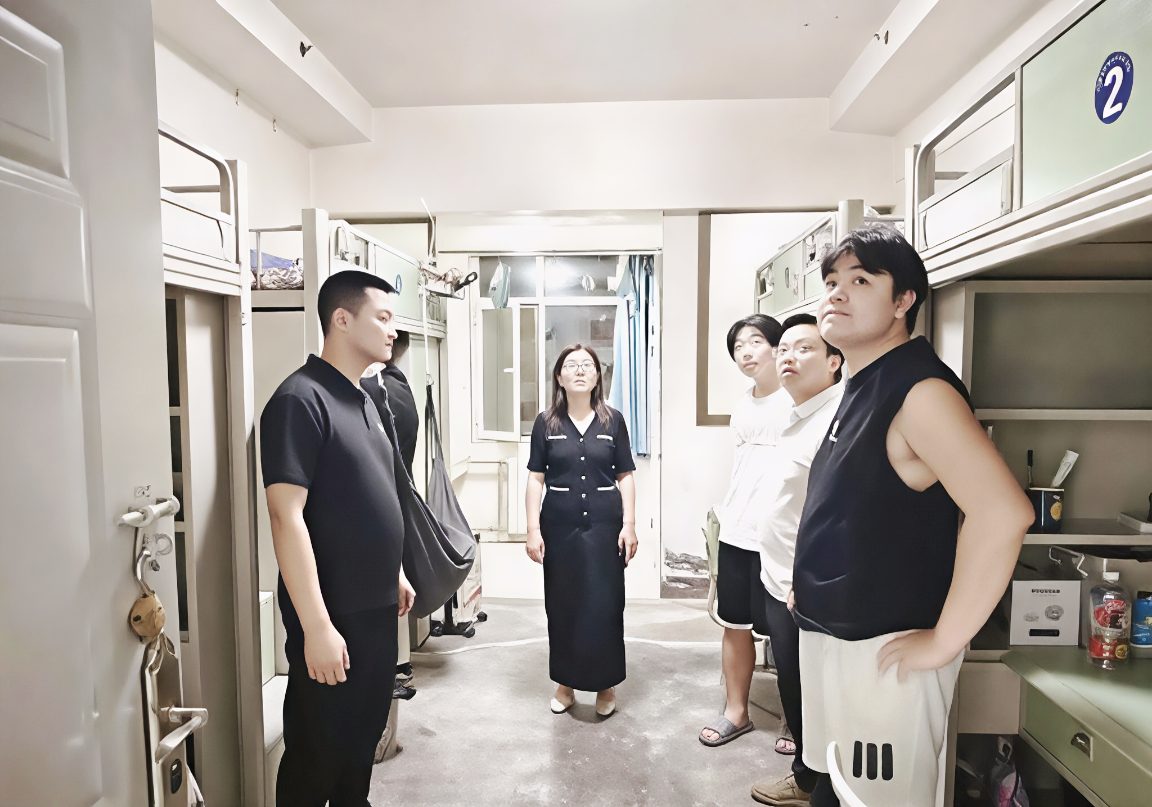 班会后,张庆华副校长带队深入学生宿舍走访。通过亲切交流,详细了解学生假期生活与开学适应情况,叮嘱同学们要尽快做好学习生活规划,严守宿舍用电规范、防范人身财产安全风险。同时,还仔细查看了宿舍内的居住环境,对卫生状况、设施安全等细节进行逐一检查,确保同学们能在安全、整洁、舒适的环境中学习和生活,让校园关怀落到实处。