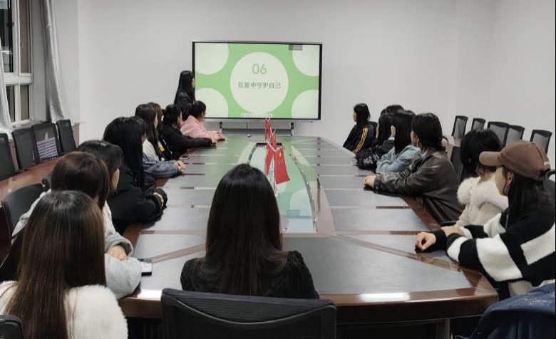 活动中,学院辅导员陈玉娟老师结合女大学生生理发育特点与日常生活场景,围绕生理健康护理、常见健康问题预防、自我保护技巧等核心内容展开讲解,用通俗易懂的语言打破知识壁垒,引导学生正确认识身体变化,掌握科学的健康管理方法。同时,针对大学生恋爱中的情感困惑与边界意识,通过案例分析与互动交流,强调“在爱中守护自己”的重要性,帮助学生树立理性恋爱观,学会在亲密关系中保持自我、坚守底线,提升情感风险应对能力。