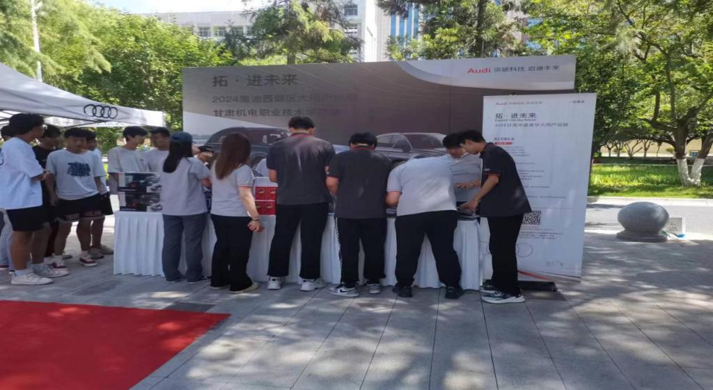本次活动由学校奥迪学院承办,合作企业甘肃中盛奥华汽车销售服务有限公司全程参与,旨在展示“奥迪订单班”的教学成果,深入推进产教融合的教育理念。举办此次校园车展是学院教学与实践相结合的重要举措,也为“奥迪订单班”学生提供了展示现场汽车销售、汽车维护等技能的平台。