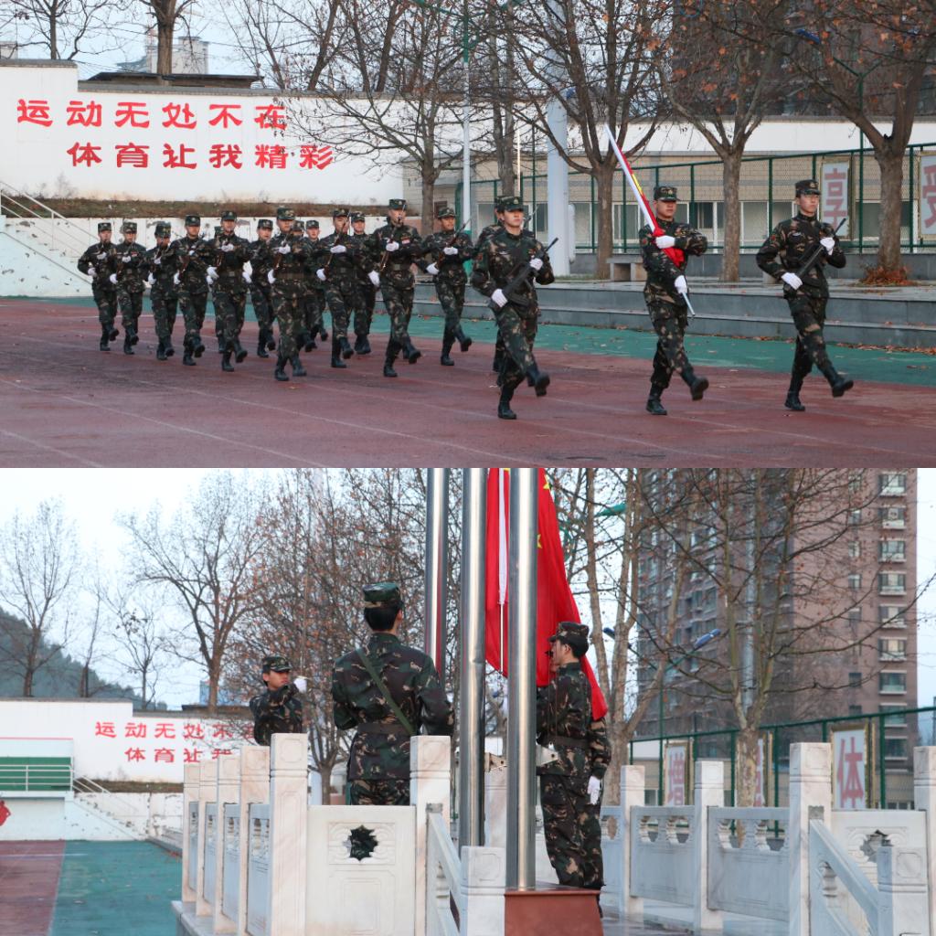 7点整,迎着初升的朝阳,校国旗护卫队队员步伐坚定有力,走到国旗台前。随着《义勇军进行曲》的激昂旋律,全体师生齐声高唱国歌,鲜艳的五星红旗缓缓升起,迎风飘扬。