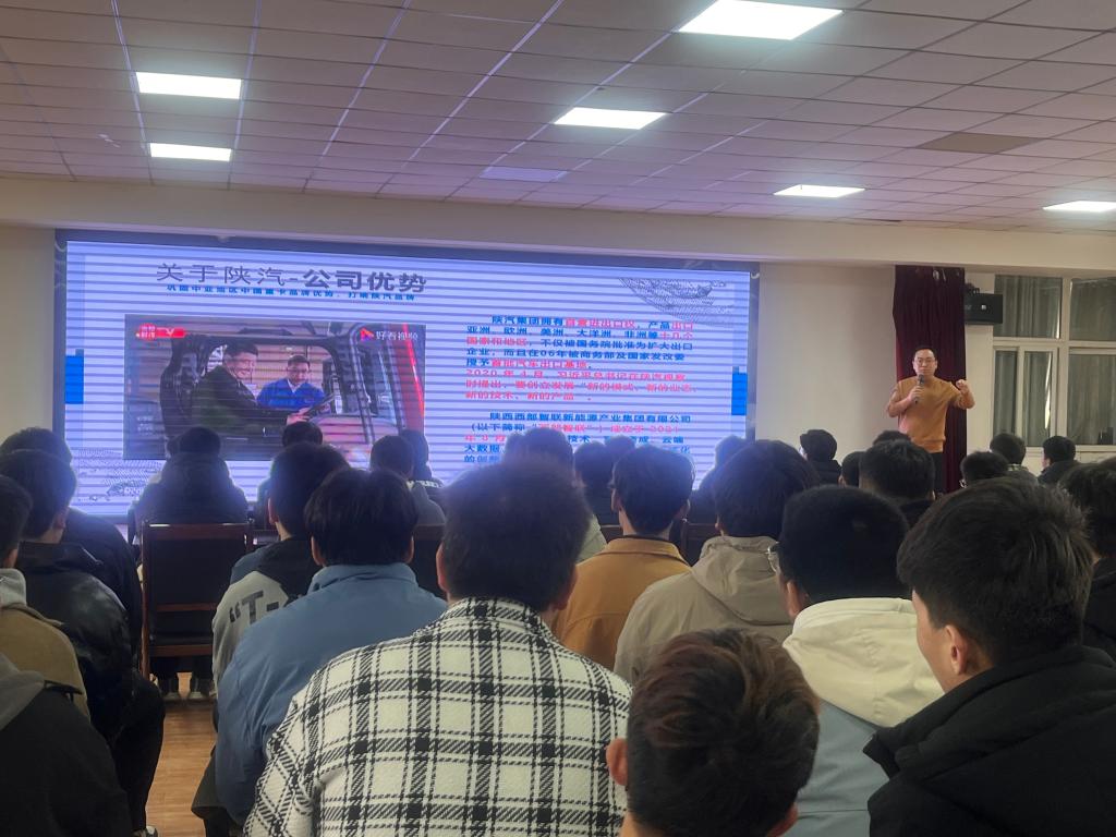 为进一步深化产教融合,促进校企合作育人,并为2025届学生岗位实习及就业早谋划、早部署,3月6日下午车辆工程学院特邀请陕汽集团商用车有限公司在北校区三号楼五楼会议室举办专场宣讲会。我院2022级部分专业学生参加了本次宣讲会。此次宣讲活动由车辆工程学院党总支书记陈怀宝主持,陕汽集团商用车有限公司主讲。