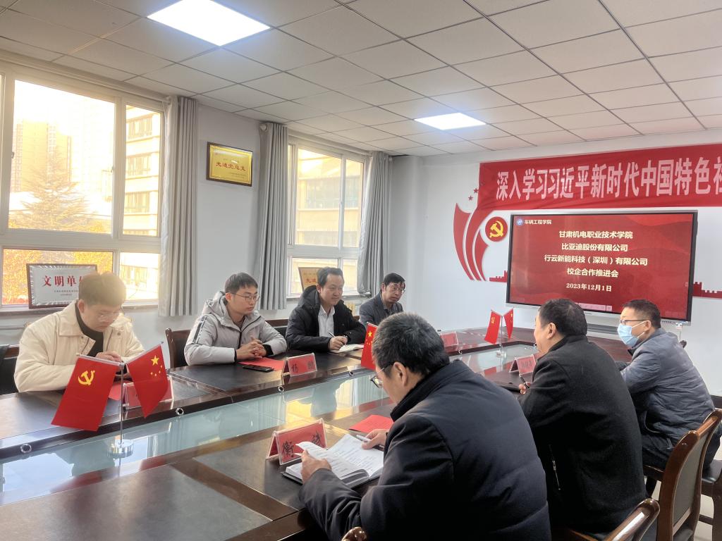 121日,比亚迪股份有限公司杨鹏代家泽行云新能科技(深圳)有限公司校企合作总监张铁军行云新能科技(深圳)有限公司西北地区销售何昊一行来我院调研,在校企合作和产业学院建设方面进行交流。车辆工程学院、对外合作办负责人及相关教师出席会议。