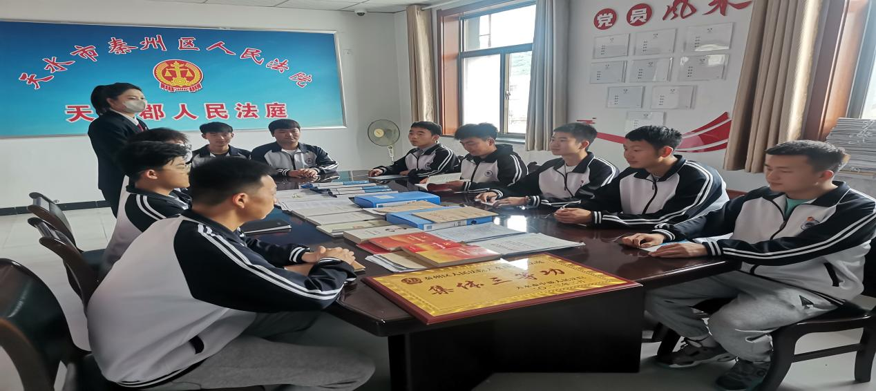 为全面学习贯彻党的二十大精神,切实用习近平法治思想引领民法典学习宣传工作,将习近平法治思想贯彻到“美好生活·民法典相伴”主题宣传全过程,切实把“民法典进万校·法伴成长路”作为“八五”普法重要任务;提高青少年大学生的法律意识,培养他们学法、懂法、知法、用法的良好意识,6月2日,车辆工程学院组织发展对象到秦州区人民法院天水郡法庭进行参观学习,让大学生走进法院,零距离接触法院、接触法律,感受法律的威严与神圣,接受法治教育。