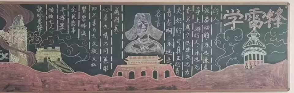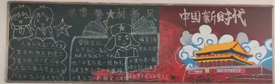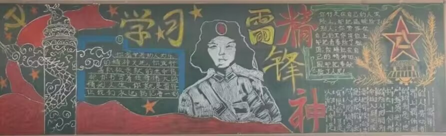活动开展以来,各班利用黑板报这块宣传阵地,介绍雷锋生平、抄录雷锋日记、收集雷锋名言、摘抄伟人题词、解析雷锋精神对有关雷锋的话题进行全方位、多角度刊载介绍,内容丰富,形式多样。以此让同学们了解雷锋、学习雷锋,将雷锋精神内化于心、外化于行。