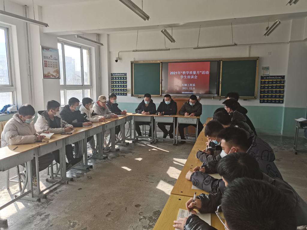 根据学院2021年“教学质量月活动”方案及要求,结合我系“教学质量月活动”具体实施方案。12月8日下午车辆工程系在3-A303教室开展了学生专题座谈会。会议由车辆工程系党总支副书记陈肖如主持,2019、2020级各班学生代表、系学生会干部共计29人参会。