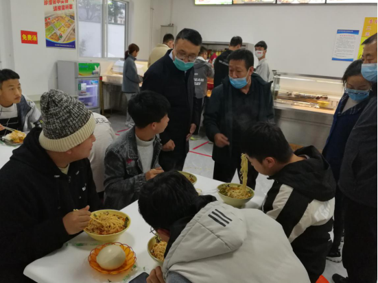 会后,坚葆林深入师生宿舍和食堂嘘寒问暖,详细了解师生学习和生活情况。对各位教职员工能克服困难、坚守岗位提出表扬,并鼓励学生干部要大力发挥带头作用,配合班主任做好各项学生管理工作;在食堂现场查看饭菜份量、价格和卫生状况,与就餐学生亲切交谈,征求学生对饮食的意见和建议;同时对食堂管理及从业人员提出,要严把米、面、油、肉食、蔬菜等食材“入口”关,保证食品安全和师生健康。