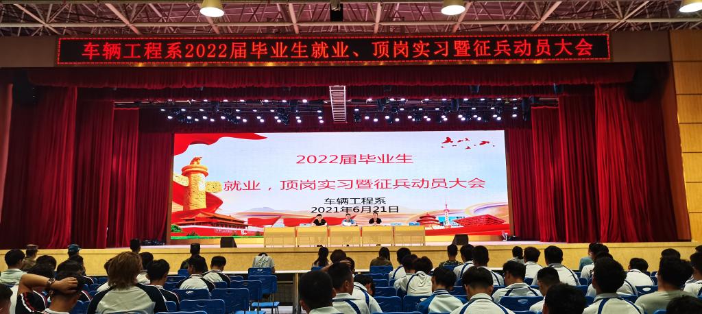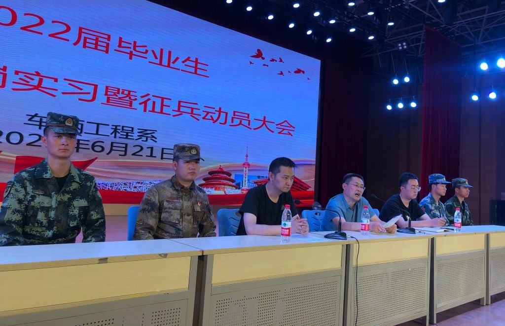 为积极响应国家大学生征兵工作号召和贯彻落实学院2021年秋季大学生征兵动员部署会议精神,进一步鼓励和引导大学生应征入伍,6月21日车辆工程系在南校区大礼堂召开2022届毕业动员暨2021年大学生征兵工作动员会。车辆工程系党总支书记陈怀宝、车辆工程系副主任陈肖如以及全体班主任、辅导员和2019级、2020级全体学生参加会议。会议由车辆工程系副主任陈肖如主持。