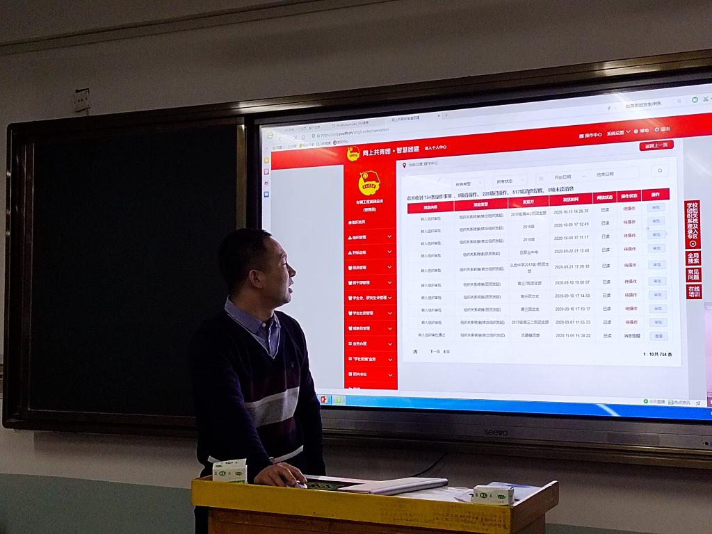 大会上,团总支书记对智慧团建的使用方法,如何帮助同学更好的转团解决一系列问题做了详细介绍,并对18级、19级、20级各班团支部书记做出培训,对一般会出现的问题做出了详细介绍并讲解了相应的解决方法。