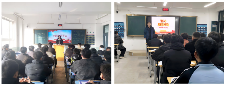 活动期间,各班级以“遵纪守法,筑牢法治根基”为主题开展“宪法微课堂”。班主任结合车辆工程专业特点,聚焦校园安全、就业权益、工程伦理等学生关切话题,通过法条解读、情景模拟、热点辨析等形式,深入浅出讲解宪法及相关法律法规知识。课堂上,同学们围绕“工科生如何践行法治精神”“职业发展中如何坚守法律底线”等问题积极发言,在思想碰撞中深化对法治内涵的理解,树立起“办事依法、遇事找法、解决问题用法”的思维方式。