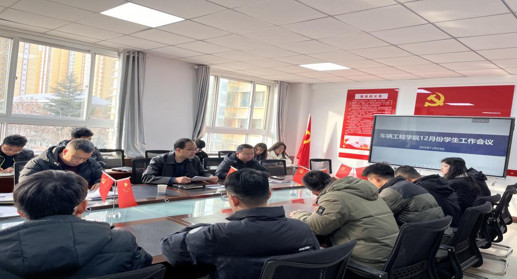 12月24日下午,车辆工程学院12月份学生工作会议在立德楼B301召开。会议由学院党委副书记谢宏斌主持,院长马桂强、办公室主任张正旭及全体辅导员、班主任参会。
