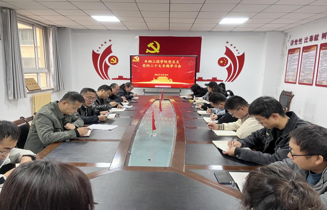 根据学院安排,车辆工程学院党总支于2022年10月25日16:30组织全体教师、专职辅导员、学生预备党员,在3-B301党建活动室,召开了党的二十大专题学习会。