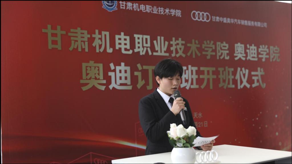 仪式上,甘肃中盛奥华汽车销售服务有限公司总经理葛建云从企业发展前景、用人标准、订单班培育成果产出等方面做出详细阐述,并鼓励订单班学生不负韶华,努力学习,知技并行,最终步入职场打好坚实基础。