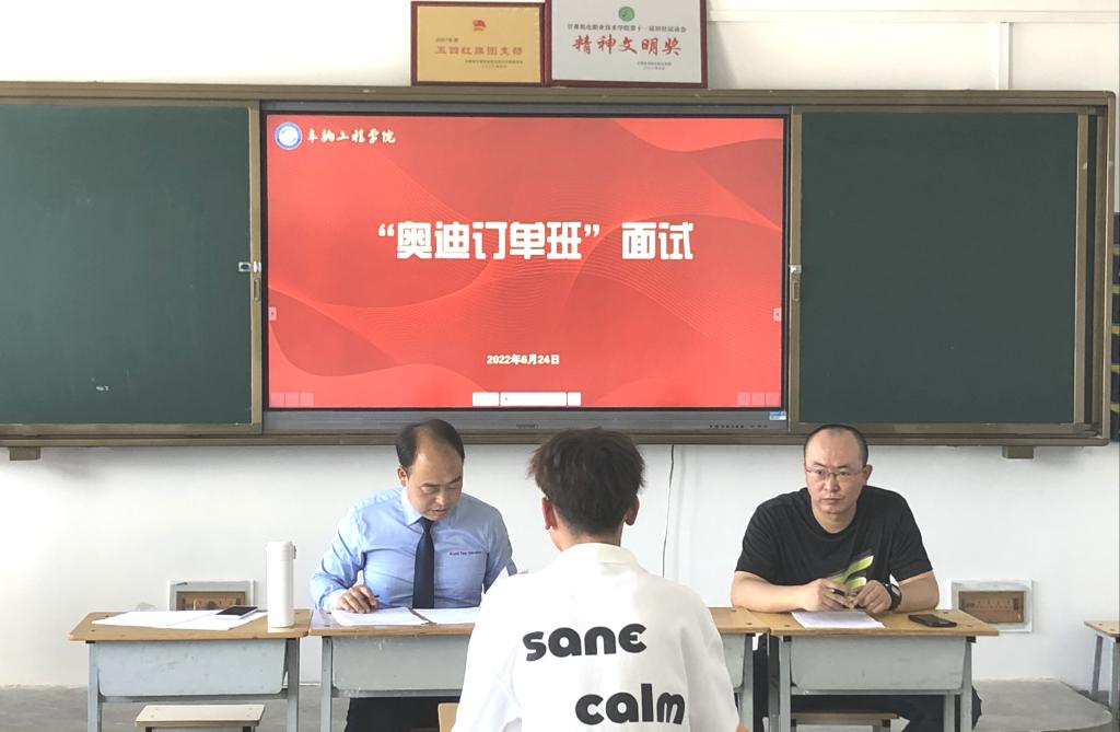此次学院“奥迪订单班”的面试工作,有利于促进行业、企业参与职业教育人才培养全过程,实现专业设置与产业需求对接、课程内容与职业标准对接、教学过程与生产过程对接、职业教育与终身学习对接,对推动职业教育体系和劳动就业体系互动发展,打通和拓宽技术技能人才培养和成长通道,推进现代职业教育体系建设的战略选择,职业院校全面提升人才培养质量和整体办学水平具有重要意义。