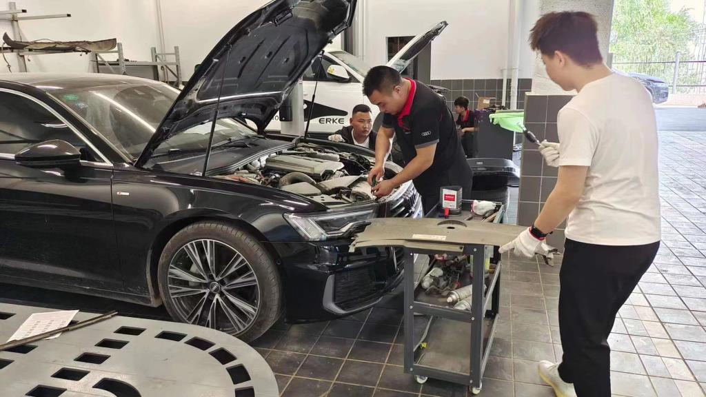 整个实训环节,由学院和企业共同制定实训计划、实施考核评价,完全按照奥迪4S店营销流程开展实训,共设有销售顾问、试驾、服务接待、服务顾问、机电维修等5个实训岗位。根据教学需要,分配工作任务,采用“师徒制”,实行“轮岗轮班制”的实训模式,使学生能够充分认识营销各岗位要求,切身体验4S店运营模式。实训期间,同学们积极向各岗位师傅请教学习,秉持“深学、真悟、勤问、善用”的实训态度。