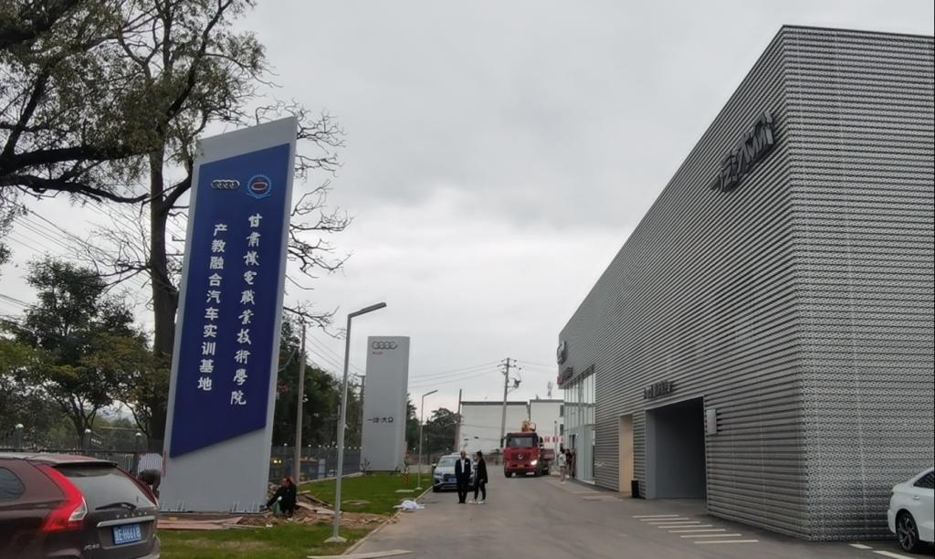 为深入推进产教融合、校企合作,提高人才培养质量,学院引企驻校,在东校区引进汽车知名品牌——奥迪4S店,在学院东校区建设了产教融合汽车实训基地。